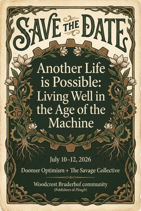 The Savage Collective will be co-hosting a regional Doomer Optimism Gathering at the Woodcrest Bruderhof.